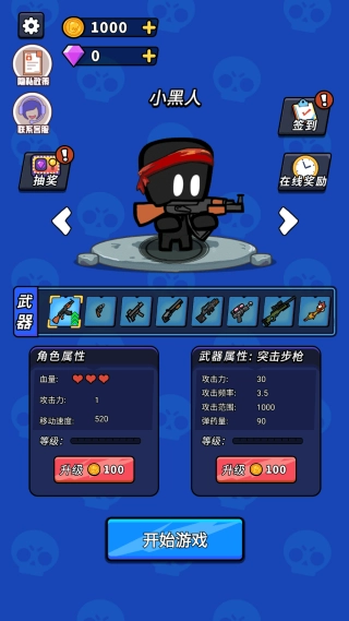 2.战前强化准备:消耗金币提升角色基础属性与武器威力,点击开始挑战进入战场