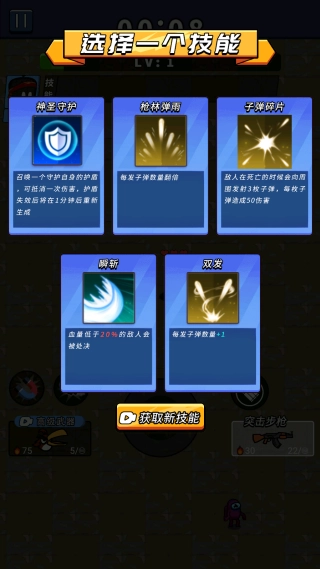 4.增益选择策略:击杀怪物获得经验值,升级时慎重选择增益效果,塑造专属战斗风格