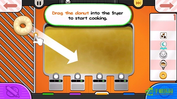 1、首先玩家要给顾客点餐,等顾客选好想吃的甜甜圈品种后,就可以着手制作对应的甜甜圈了。