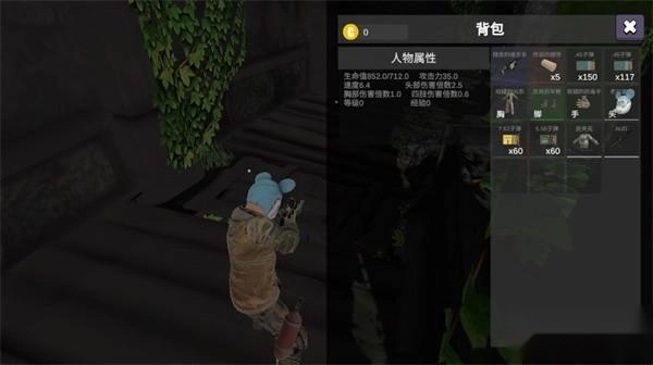 5、点击背包可以查看人物属性和你获得的道具;