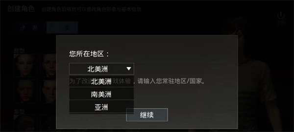 5、然后选择人物性别,发型,头发颜色,脸型以及皮肤颜色,选好之后,取一个昵称,就可以愉快的玩PUBG日韩服了。