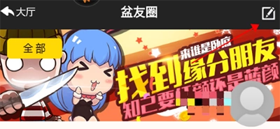 3、进入盆友圈字后可以看到各个玩家发布的内容,点击右上角的编辑按钮;