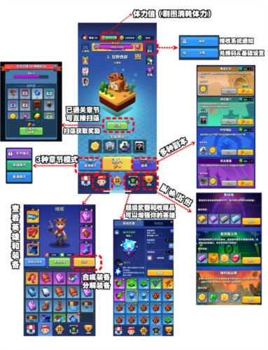 通过强化、收藏品、装备合成和超级武器等方式,提升英雄战斗能力,增加乐趣。