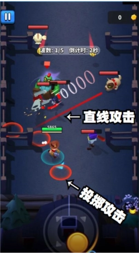 僵尸攻击之前会有提示,如图中的红线和圆圈。萌新们注意要提前走位躲避僵尸的伤害哦。
