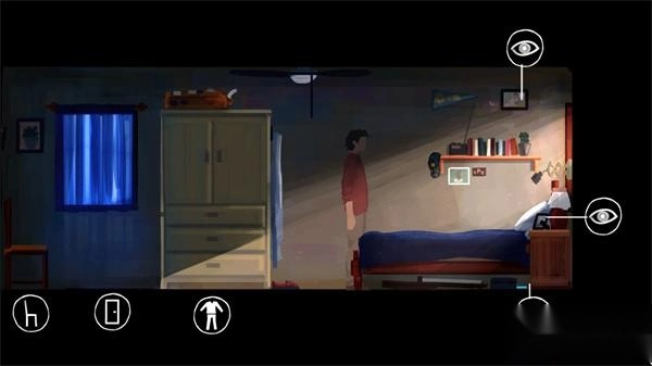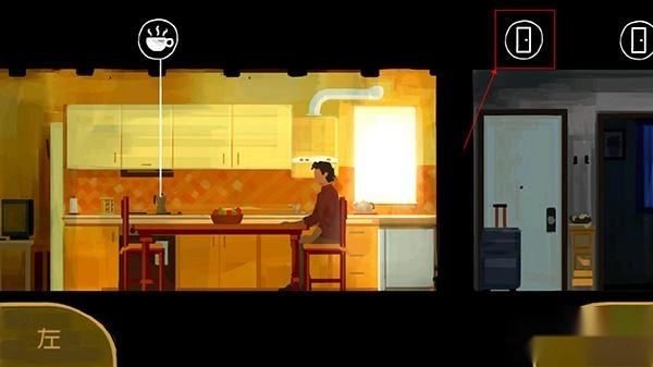 2、在开始剧情里,屏幕按住左下角就是向左走,按住右下角就是向右走,此时我们向左走进房子里并点击“爱心”,之后进入房子里,点击两次“时间钟表”;