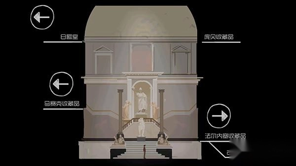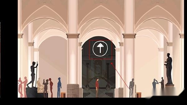 6、最后向右走,点击向上进入,能够选择看到各种展品。