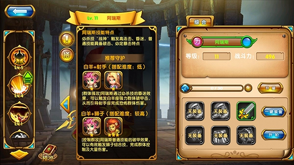 阿瑞斯可以通过选择白羊座+狮子座守护的搭配来提升自身实力,白羊座守护需要通过连续登陆获取,只要累计登陆一天就可领取白羊座守护,而狮子守护只要首笔充值达到6元就可以获得首充礼包,礼包中包含三星阶的狮子座守护以及各类转职道具经验药水和金币。