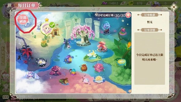 看!就戳这个全部刷新,每日有两次刷新订单的机会,其余的机会需要拿神叶刷新。