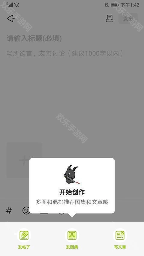 4、在社区,我们还可以进行发帖子、发图集和写文章,