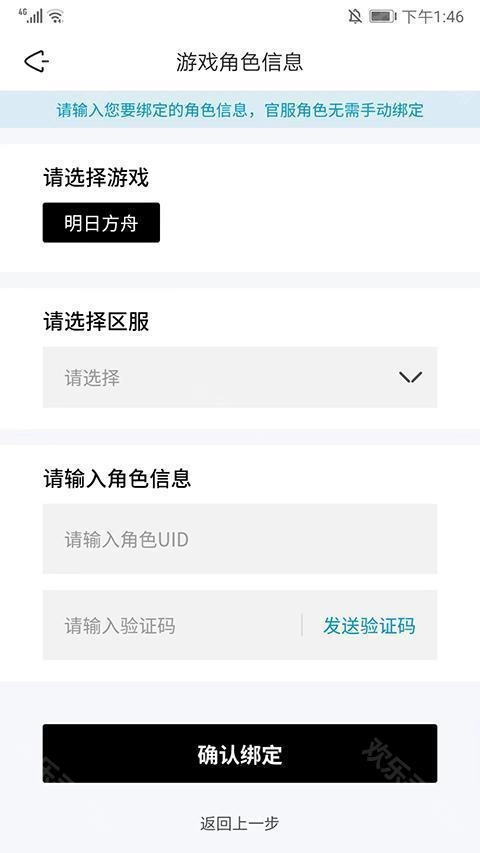 8、选择相应的、区服,然后输入角色信息和验证码后,选择【确认绑定】选项就可以在森空岛中绑定角色信息了。