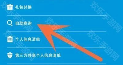 3、弹出小窗口,包括礼包兑换、自助查询、个人信息清单选项,选择【自助查询】选项,