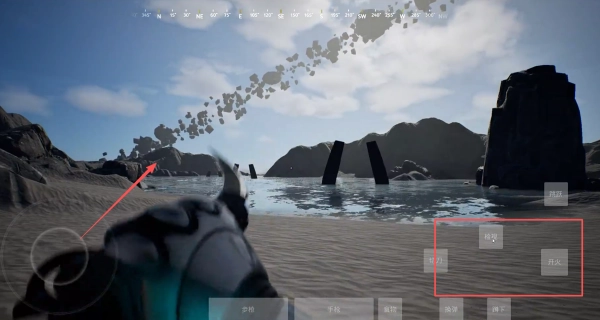 1、界面右侧按键是物品交互功能键,使用物品前需先点击对应功能键激活操作,左侧按钮可控制角色方向。