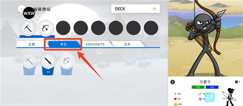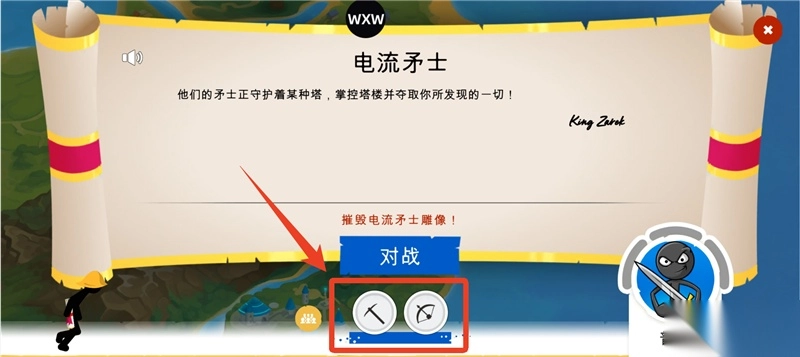 4、点击之后我们可以看到这个关卡的介绍,点击下方那一列的圆圈,我们可以更换兵种和法术等卡牌。