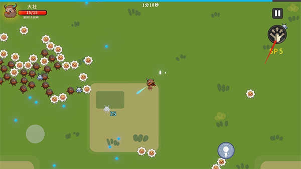 蓝色光点代表经验值,积累满格即可升级,解锁技能槽或强化已有能力。