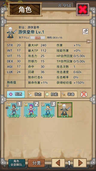 角色在罗格斯商会中招募,职业数量约六十种,各具专属技能树。主动技能需编入快捷栏方可使用,被动技能一经习得即刻生效,无需额外操作,润物无声地强化你的远征队伍。