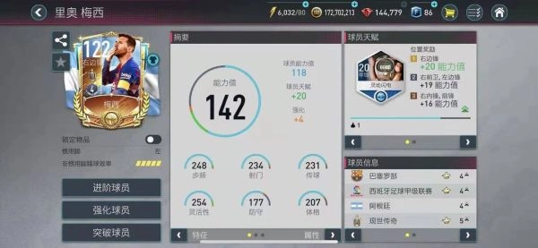 ● 右边锋的位置选择到梅西。梅西作为当世进攻技巧最全面的那个人,拥有出色的大局观,组织能力,盘带能力,个人能力极强。灵动闪电的天赋帮助梅西在步频和盘带控球方面更加出类拔萃,同时梅西在射门方面拥有出色的射门技巧,良好的跑位能力也可以趁对手不注意时跑到最好的位置帮助球队屡屡建功。