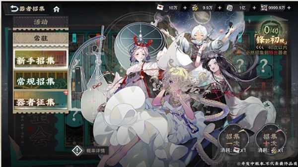 将有更多器者加入。在“招集”系统中,收藏家可使用“请调券”和“琳琅合券”在活动卡池或常驻卡池中招集器者。此外,还可使用“征集信”进行器者征集。