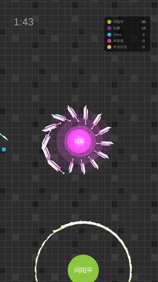 当你长按手指开启攻击模式时可以移动,和别人撞刀的话刀会飞掉。松开手指切换到防御模式后就不能移动了,刀会聚集在身边且刀刃朝外,视野会变窄,球体还会散发出光晕。这时候要是有人以攻击形态来攻击你,你的刀不会掉,但攻击者的刀会狂掉。要是攻击者也开启了防御形态,那你们俩就准备玩“123木头人(球?)”吧——毕竟谁也打不到谁,谁先动谁就死(这是和电脑玩出来的经验)。