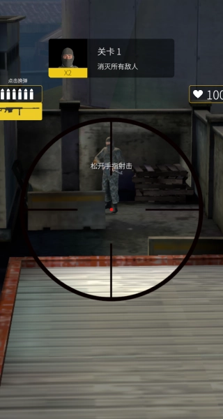 2、点击屏幕瞄准目标,松开手指射击,将其击毙。