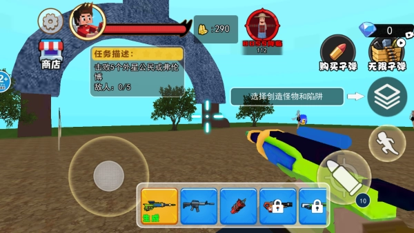 4.在商店中玩家可以消耗金币购买不同的枪械武器,这些武器将可以在不同的场景下发挥作用!