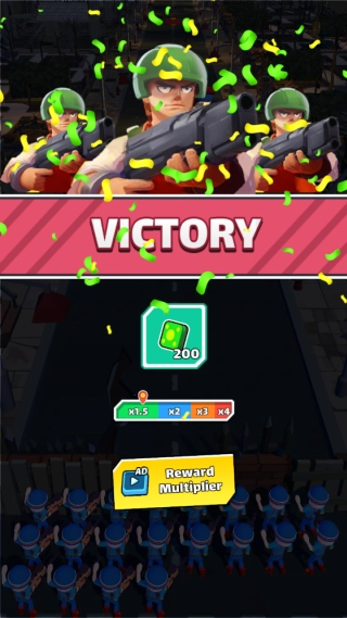 1.玩家操控士兵单位,在移动过程中发起攻击;借助滑动操作完成瞄准与射击,士兵会自动移动,但攻击目标的选择和出击时机需要玩家手动把控,同时还要收集行进路径上的增益道具。