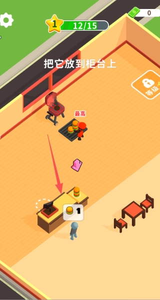 3、将制作好的汉堡放置到柜台上,吸引顾客前来购买,从而获得收益。
