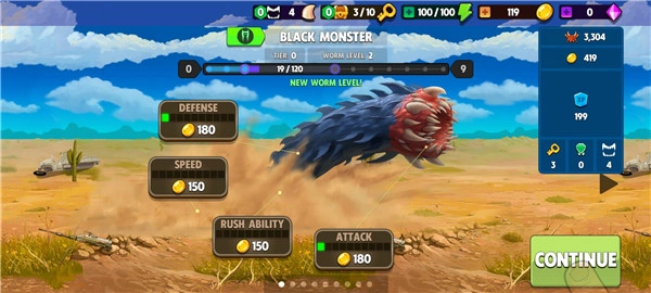 6、通过对蠕虫的各个部位进行升级,可以获得更加强大的能力;