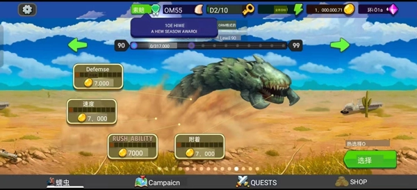 3、你需要不断的袭击上面的动物、人类以及各种车辆、飞机等人类社会的文明产物,或者获取炸弹、兴奋剂等奖励加强战斗力,并获得击杀经验值并升级。
