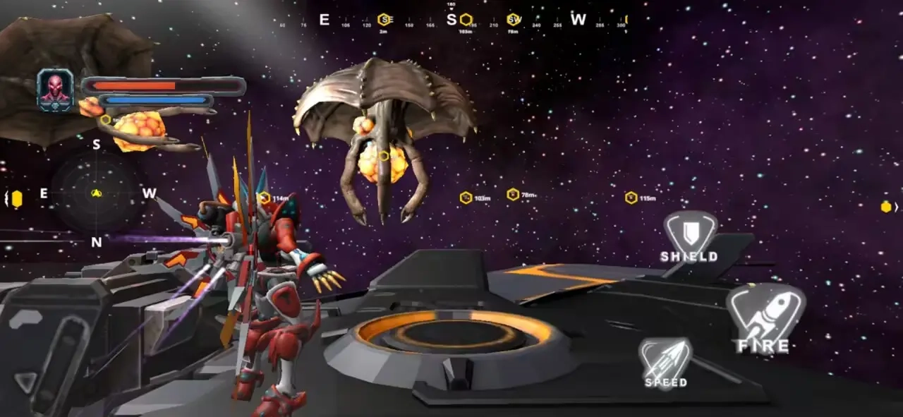 《机甲空间突破》是一款极具未来感的科幻机甲射击冒险游戏。在其浩瀚无垠的宇宙世界里,玩家将亲自操控各类造型前卫、性能顶尖的未来机甲,在璀璨星辰间自由穿梭,投身于一场场紧张刺激的射击对决。每款机甲都拥有独一无二的外观设计、先进的武器系统以及特色技能组合,让玩家能够根据自身的战斗风格与策略需求,自由选择并打造专属于自己的机甲战士。