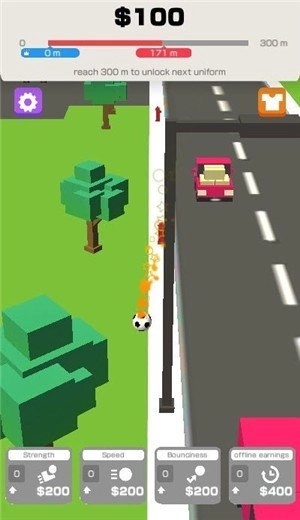 3、独特的足球玩法,在街道上随处可见足球,你可以拾取他们然后将足球射门。