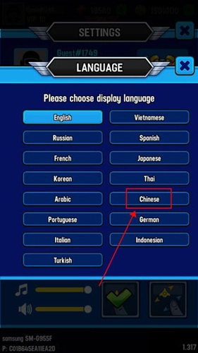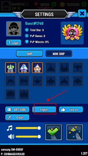 首次进入银河之战后,先快速完成教程部分,接着返回主界面,点击左上方的【头像】,再点击【English】,具体位置如箭头所指。