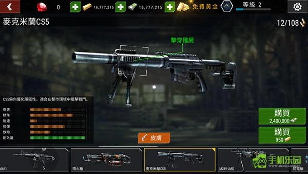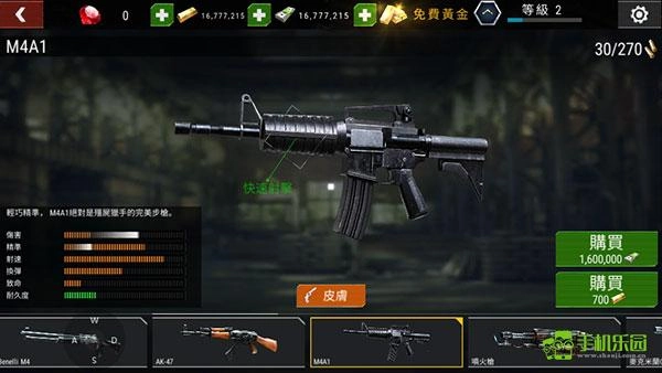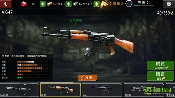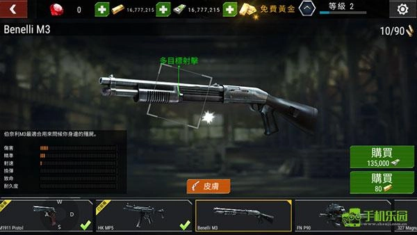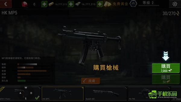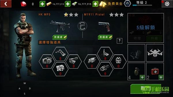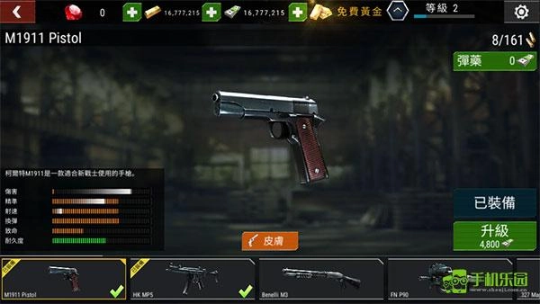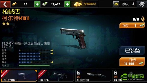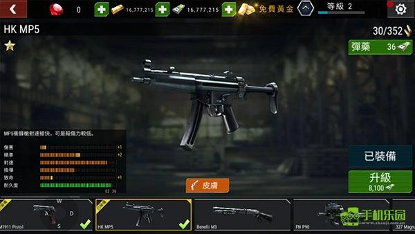 需要升级才能解锁更强力的枪支,并需要黄金购买才能使用。开始送一把初始的手枪和冲锋枪,使用现金升级,升级次数也是受玩家等级影响。在无法购买后续的枪支时,升级已有的枪支是不错的选择。