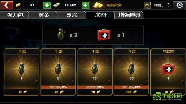 手雷和急救包是必需的,手雷能在玩家被僵尸包围的时候炸掉所有僵尸,急救包是可以恢复血量的。这两个道具每日登陆都会送几个,要节约点用,也可以花黄金买,但如果不是氪金玩家就不要花黄金了,把黄金留着买枪。