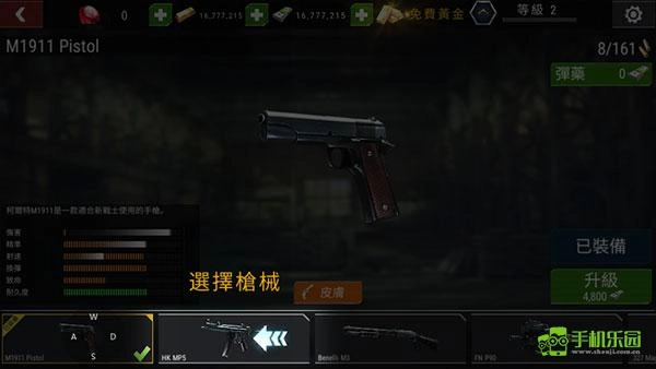1、m1911手枪:初始手枪,威力过小,射速输出中等,弹量倒是不错,唯一的优势是换弹速度快,前期可以用来做一些简单的任务。这枪适合对付初始的机械师及流浪汉僵尸,后面的毒液、警察及举盾牌僵尸和铁盔僵尸打起来力不从心。