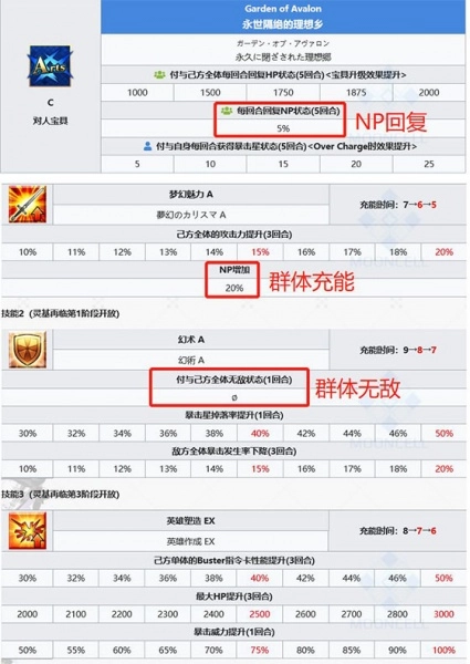 核心优势:群体无敌,中长线作战和消耗战中,宝具的HP/NP回复效果显著