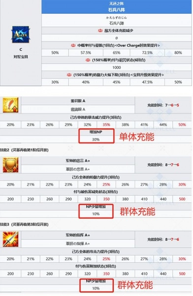 优势:可以为红卡队伍带来质的飞跃。2技能群体无敌相当实用,但CD略长。5回合的宝具回复HP/NP效果。1技能增加群体攻击力并群体充能20%,3技能为红卡队爆发技能,3回合50%红魔放,1回合暴击威力提升,暴击伤害无色卡限制,但只持续一回合。