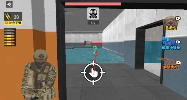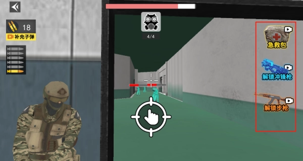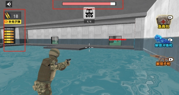 4、可解锁左侧更高级的武器,以及在血量不足时解锁急救包,提升生存能力。