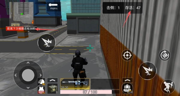 3、时刻关注当前剩余的敌人数量和安全区的缩圈情况,确保自己始终处于安全区域内。