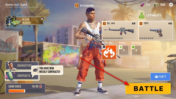 1.进入到之后,选择一个角色,搭配不同的武器,在场景中展开生死对决。