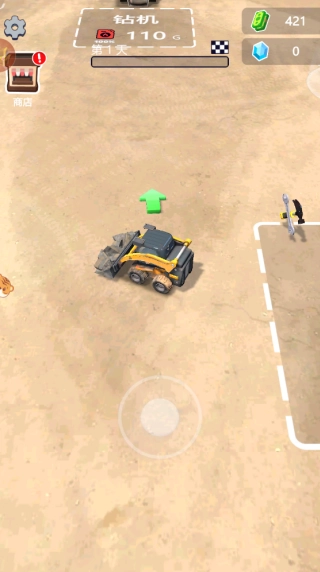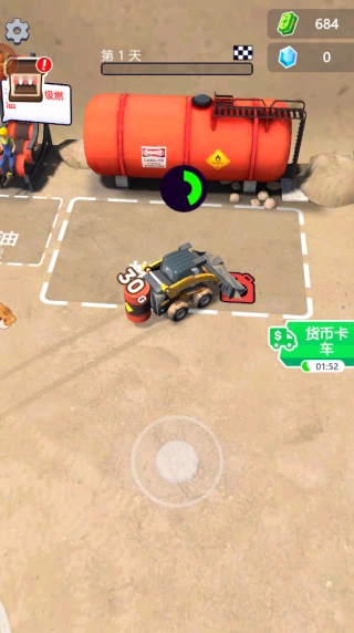 3、驾驶车辆挖掘砖块,将其运送至指定位置出售,获得钞票后及时为车辆补充燃油。