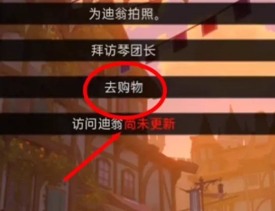 4、当攒够一定数量的摩拉后,点击去购物选项,购买恶作剧所需的道具。
