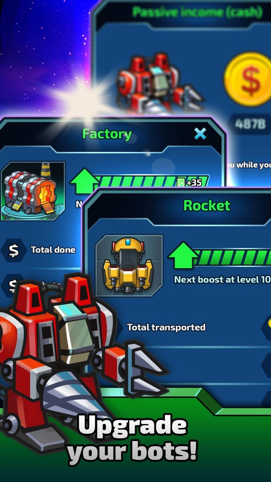 玩家在挑战中要不断的升级自己的采矿船和行星,你还要一步步的增加自己的利润并挖掘出宝贵的财富,玩家要扩大自己的帝国星空,感受轻松且休闲的点击玩法,是一部操作显得简单易于上手的内容。