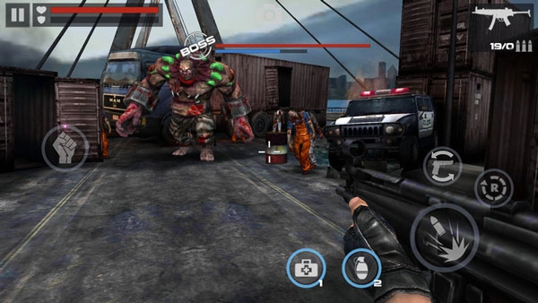 巨岩怪是前期任务中的一头拦路虎,是僵尸头目,有着超高的血量和攻击,如果武器不好的话根本无法将其击杀。在准心那里有个油桶,当巨岩怪走到那里的时候攻击油桶它就会爆炸,对巨岩怪造成伤害。在这里还要同时注意其他小僵尸,被围攻了很容易死掉,建议这一关买了第三个武器(散弹枪)的时候进行尝试。