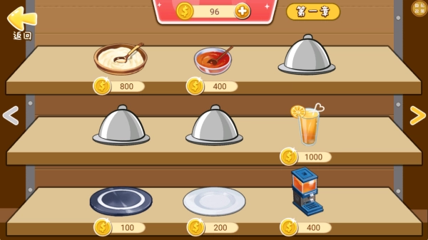 4、通过关卡奖励获取金币资源,逐步解锁高级餐具、装饰物品及特色菜品