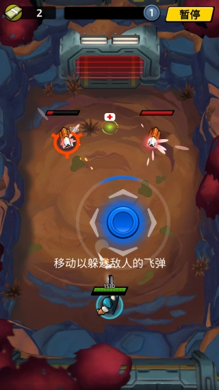 1、通过操控角色移动,避开敌人发射的飞弹,同时寻找合适时机,利用攻击按钮对敌人发起进攻,保证自身安全的同时推进战斗。