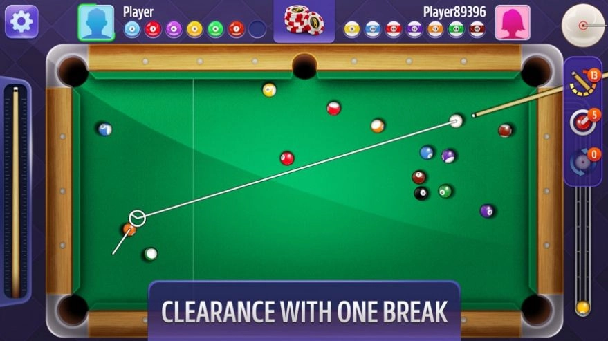 1、花式台球的玩法和现实中的台球十分相似,玩家需要把控好击球的力度与角度,才能让球顺利入袋。