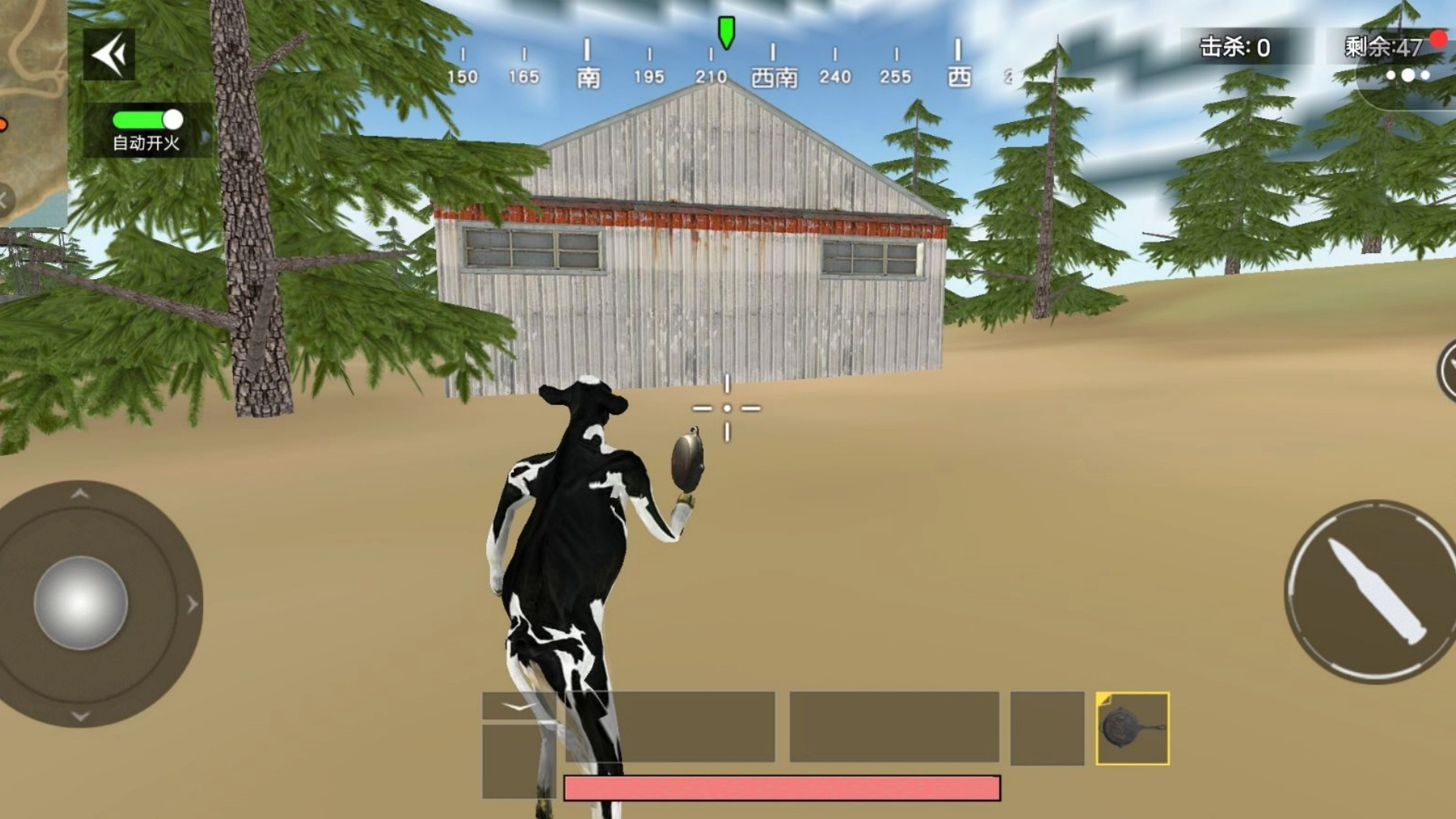 奶牛特工精英是一款趣味十足的枪战吃鸡游戏。玩家将化身造型搞怪奇特的奶牛特工,在紧张刺激的战场中开启冒险之旅。游戏以团队作战为核心,战场内分布着枪支、弹药等各类补给资源,玩家可通过收集这些资源来增强自身战斗力。不过,战场中也潜藏着敌人突袭的风险,玩家不仅要搜寻装备提升实力,还需时刻警惕对手的攻击,依靠精准的射击技巧击败敌人。