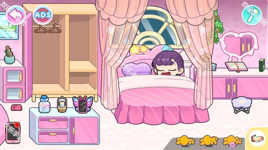 7、画面中所有的东西都能进行互动,比如把角色放在床上她就会睡觉。