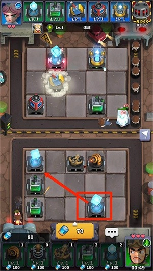 6、将两个相同类型的炮塔进行拖动合成,可以升级成更厉害的炮塔,拥有更高的伤害和更快的射速,从而更快的将僵尸消灭。