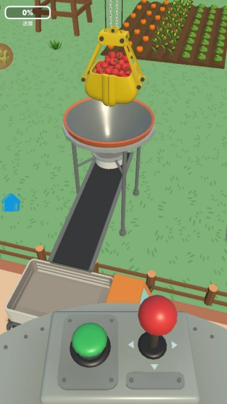 2、先种植一批当季苹果,熟悉果树生长周期,待成熟后操作摇杆控制吊车移动,点击“抓取”按钮将苹果放到运输车上,完成首次采摘。